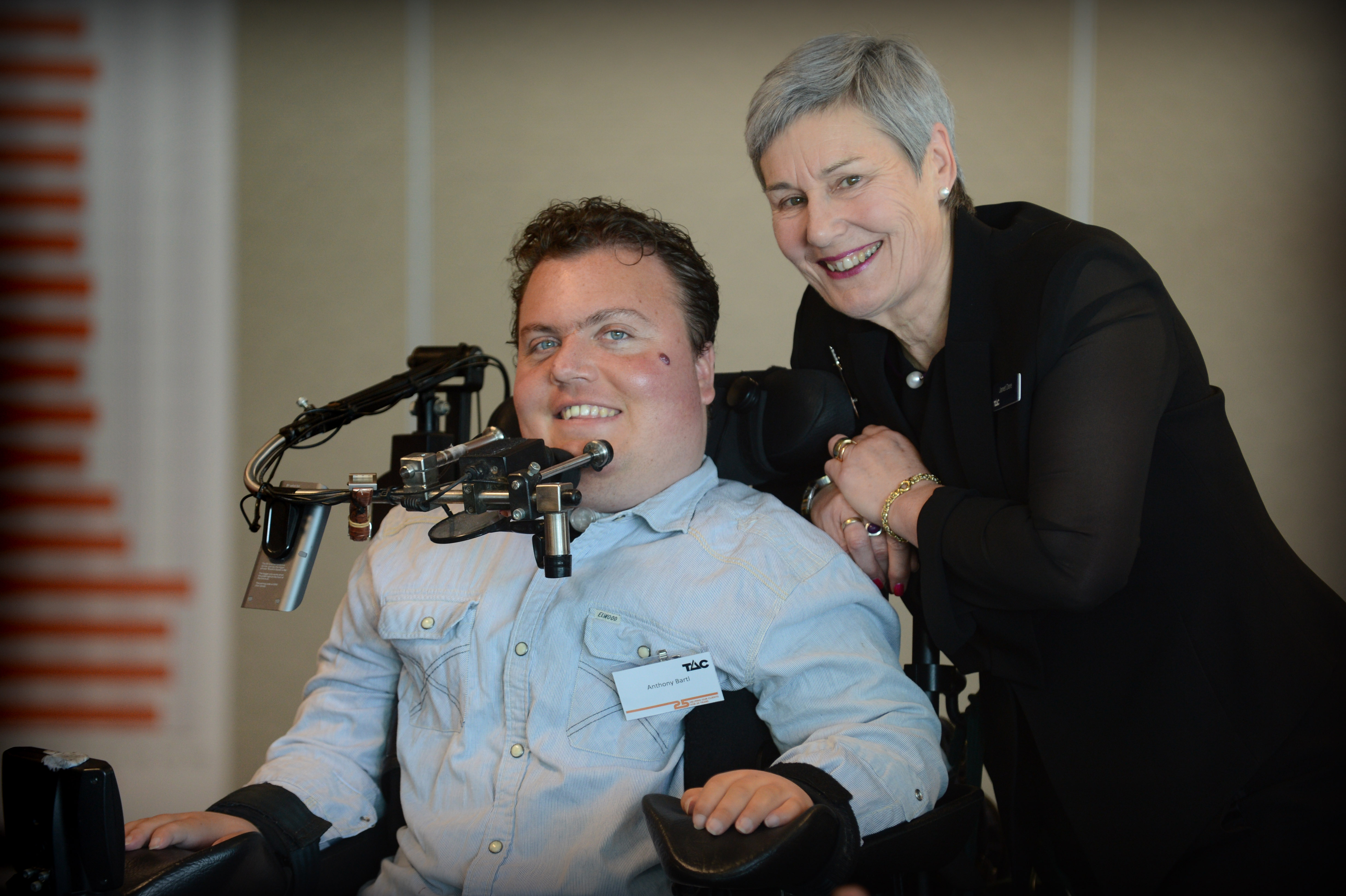 Two young Victorian men who are defying the odds to live fulfilling lives have shared their stories at an event to celebrate the Transport Accident Commission's 25th anniversary today.