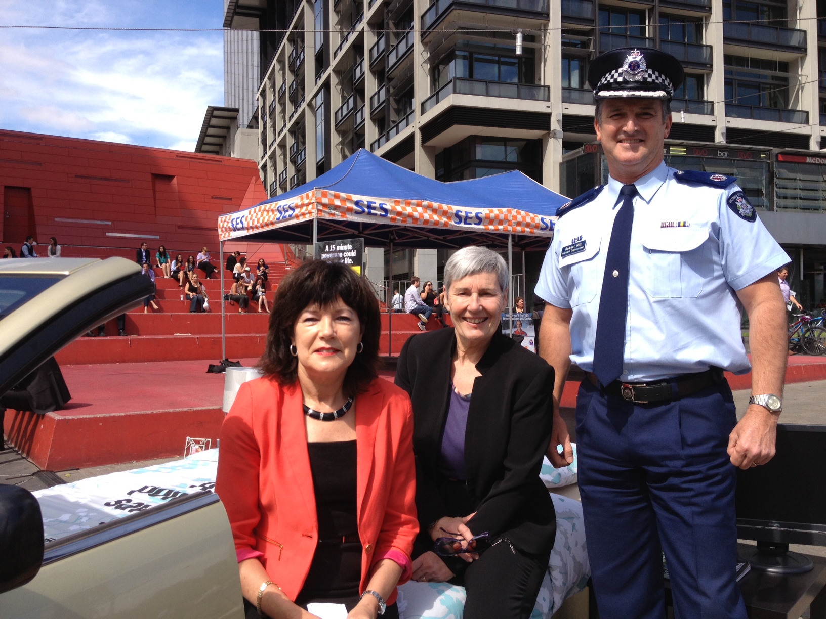 3: SES CEO Mary Barry, TAC CEO Janet Dore and Victoria Police Assistant Commissioner for Road Policing Robert Hill.