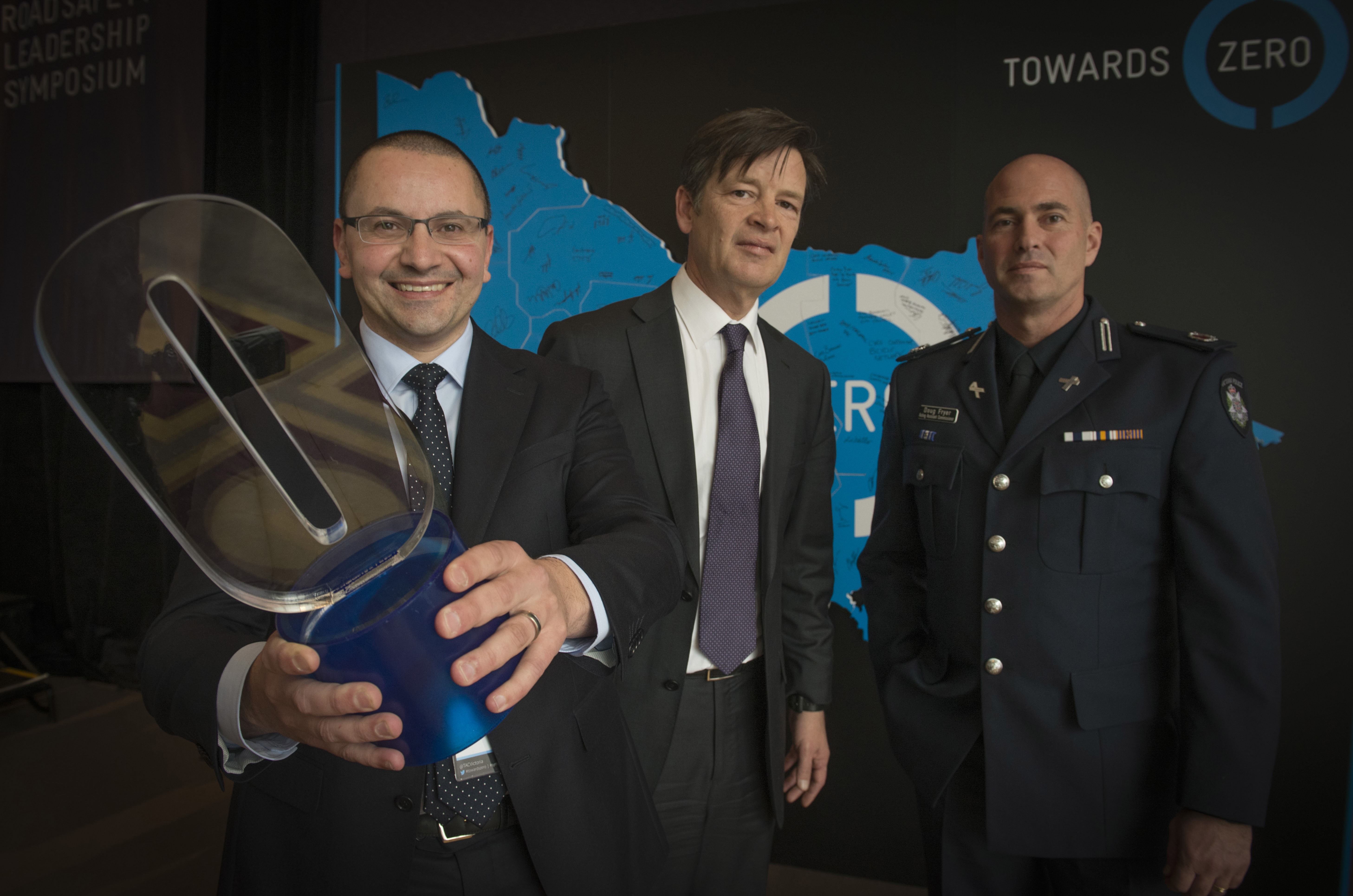Joe Calafiore TAC CEO, Minister Luke Donnellan, Doug Fryer Acting Commissioner for road policing at the Towards Zero launch
