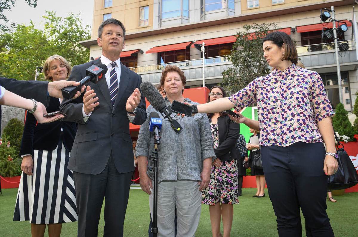 Download Hi-ResMinister Luke Donnellan and Christine Latimer launch TAC's Be Present in Christmas Square.
