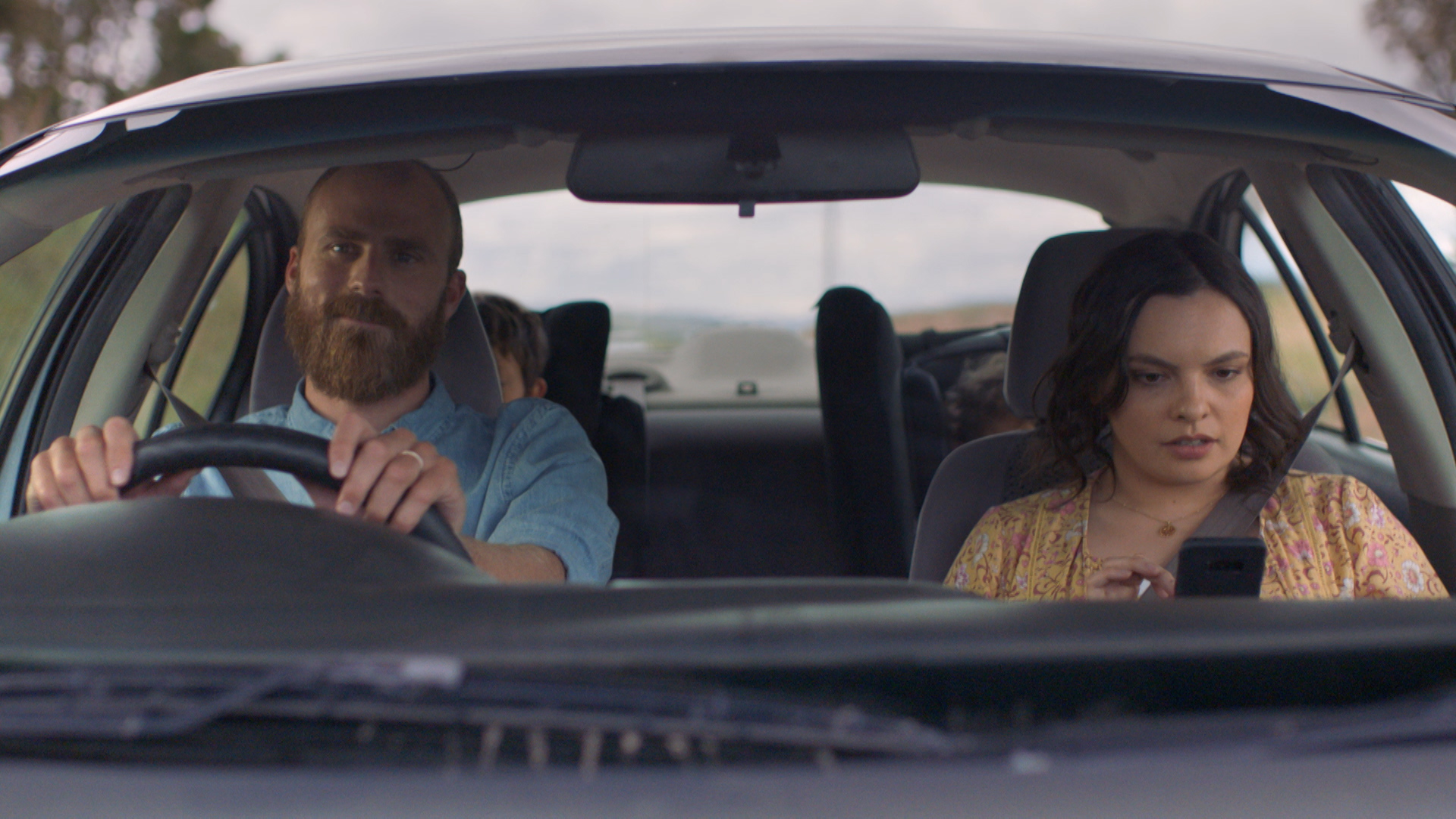 During their drive, they almost encounter police on three occasions, including a moment when police don’t see them speed past because a truck is obscuring their view. Further along, the dad is distracted, loses control of the vehicle and they roll down an embankment – the campaign tagline then appears, ‘the lucky ones get caught’.