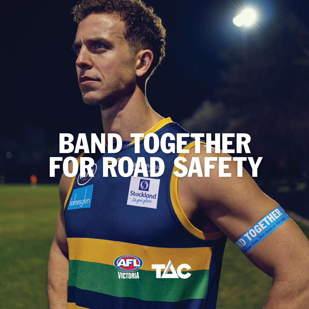 Road Safety Round, in its sixth year, will see Victoria’s regional and suburban clubs don blue armbands to pay tribute to everyone killed or injured on the state’s roads, and ‘Band Together’ for road safety.