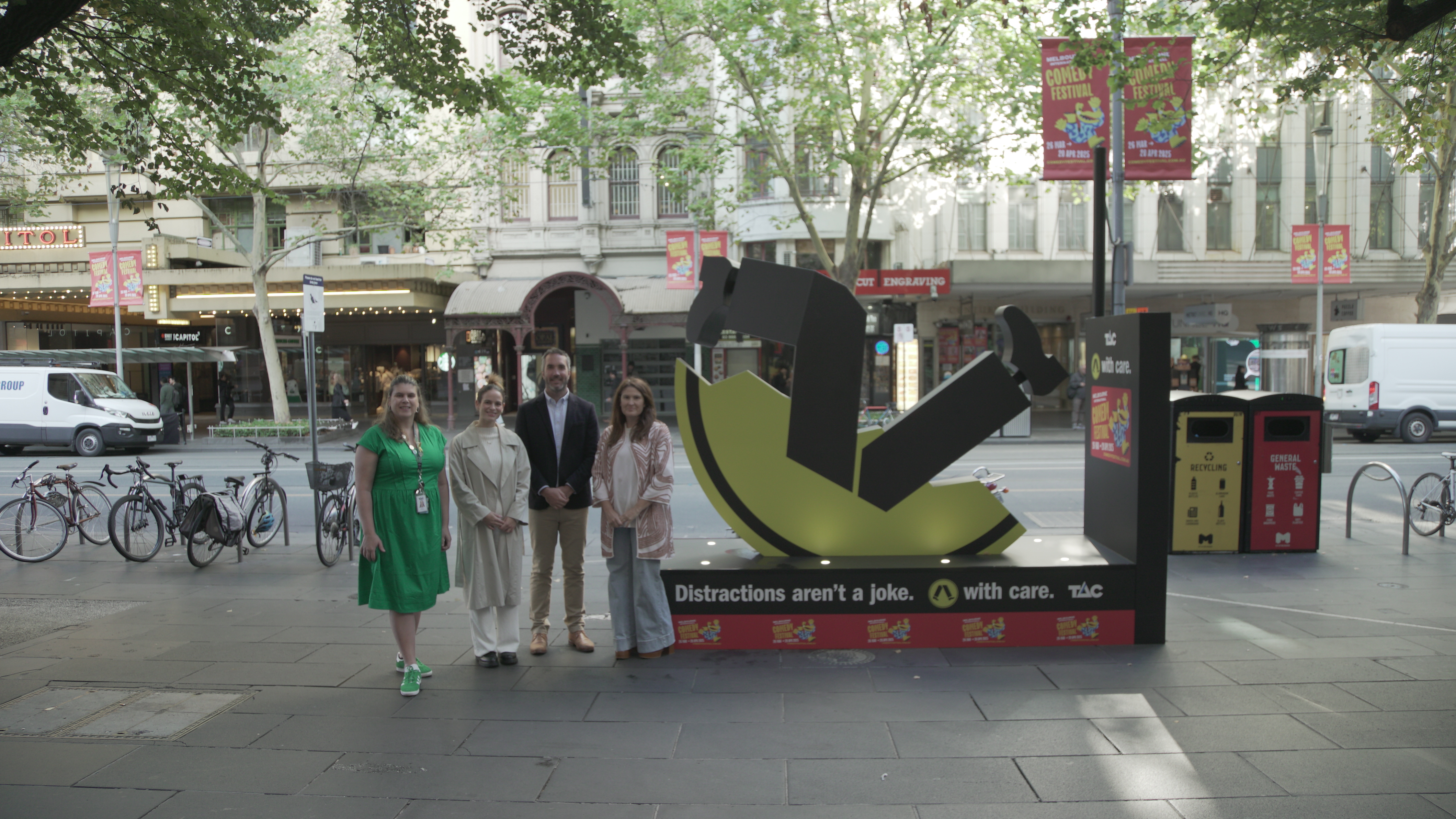 The TAC will have a presence in Melbourne’s CBD throughout this year’s Melbourne International Comedy Festival, encouraging all road users to play their part in keeping pedestrians safe.